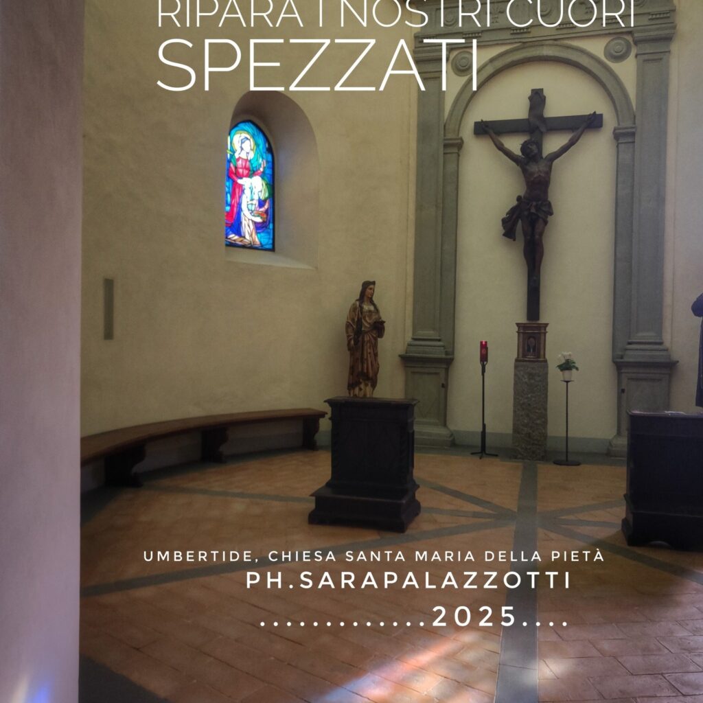 Tra le colline dell’Alta Valle del Tevere, appena fuori dal centro storico di Umbertide, si trova la chiesa di Santa Maria della Pietà. È un edificio sobrio, raccolto, costruito nella seconda metà del Quattrocento su un piccolo rialzo del terreno chiamato un tempo “Mercatale”. L’insieme, oggi come allora, appartiene ai Frati Minori, con un’identità francescana che emerge nella semplicità della facciata e nell’atmosfera pacata del complesso.